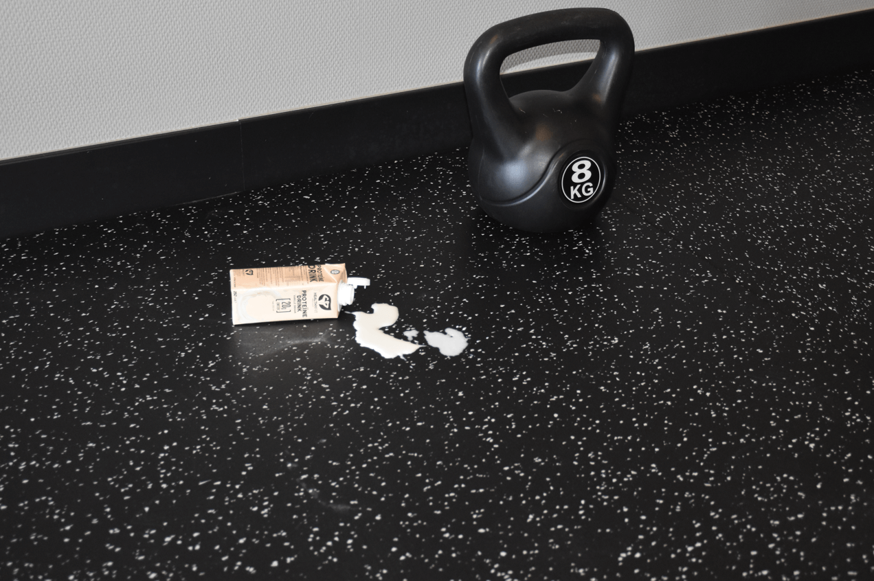Aan de andere kant van het spectrum bevindt zich CleanFIT, een sportvloer die juist is ontwikkeld met hygiëne en onderhoudsgemak als belangrijkste uitgangspunten. De gesloten toplaag maakt deze tegels eenvoudig te reinigen, waardoor vuil, stof en magnesium zich minder hechten aan de rubberen vloer. Naast hygiënisch oogpunt heeft deze tegel ook een strakke en moderne uitstraling. Dit geeft een gym, fitness ruimte of PT studio een mooi geheel.